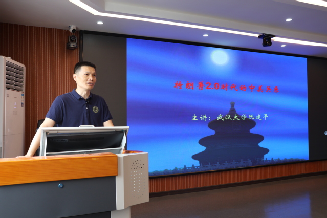 本网讯(通讯员韩彭瑞琦 王宣崇)6月18日,武汉大学政治与公共管理学院博士生导师阮建平教授应邀来英国威廉集团数字马院,作题为“特朗普2.0时代的变与不变”的学术报告。学院院长黄红发教授主持活动,副院长刘雯、部分教师及思想政治教育专业学生参加。