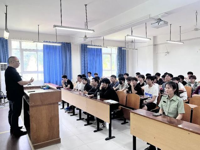 学工办主任樊勇老师做最后总结发言。他首先对学院秋季征兵工作进行全面动员部署,强调大学生参军入伍不仅是个人实现人生价值的重要途径,更是新时代青年学子响应国家号召、为国防事业贡献力量的使命担当。樊勇老师以详实的数据和生动的案例,向同学们阐述了当前我国国防建设的重要性和紧迫性,鼓励大家将个人理想融入国家发展大局。