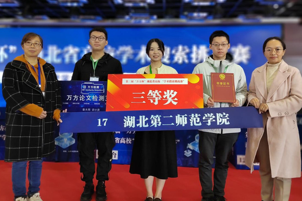 本网讯(通讯员 汪先莉)11月6至7日,由湖北省高校图工委、湖北省高校数字图书馆举办的第三届湖北省高校“学术搜索挑战赛”总决赛在武汉大学图书馆总馆学术报告厅举行。经过激烈的比拼,我校刘子毅、郭世琦、段贞三位同学组成的代表队获三等奖,薛淑峰、汪先莉两位老师获“优秀指导老师”奖。
