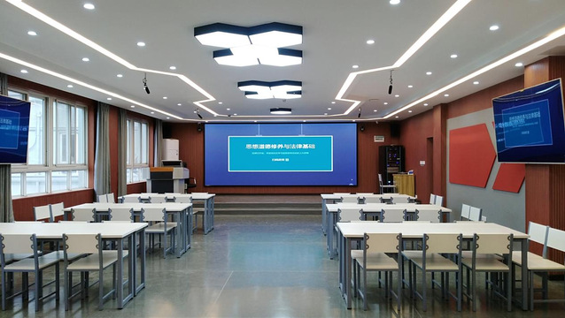 6、数字马院智慧教研室:分别设置《马原》、《概论》、《纲要》、《思修》、《形策》、思政专业智慧教研室,推进马院基层教学组织信息化建设。每个智慧教研室都配有大显示屏,能显示数字马院所有信息,并与校内信息化平台相通,是数字马院的一部分。
