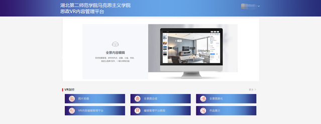 1、数字马院文化展示VR体验大厅:马院数字化、智慧化、集成化的对外展示窗口,包括马院大数据展示区、文化展示区、思政VR体验区。